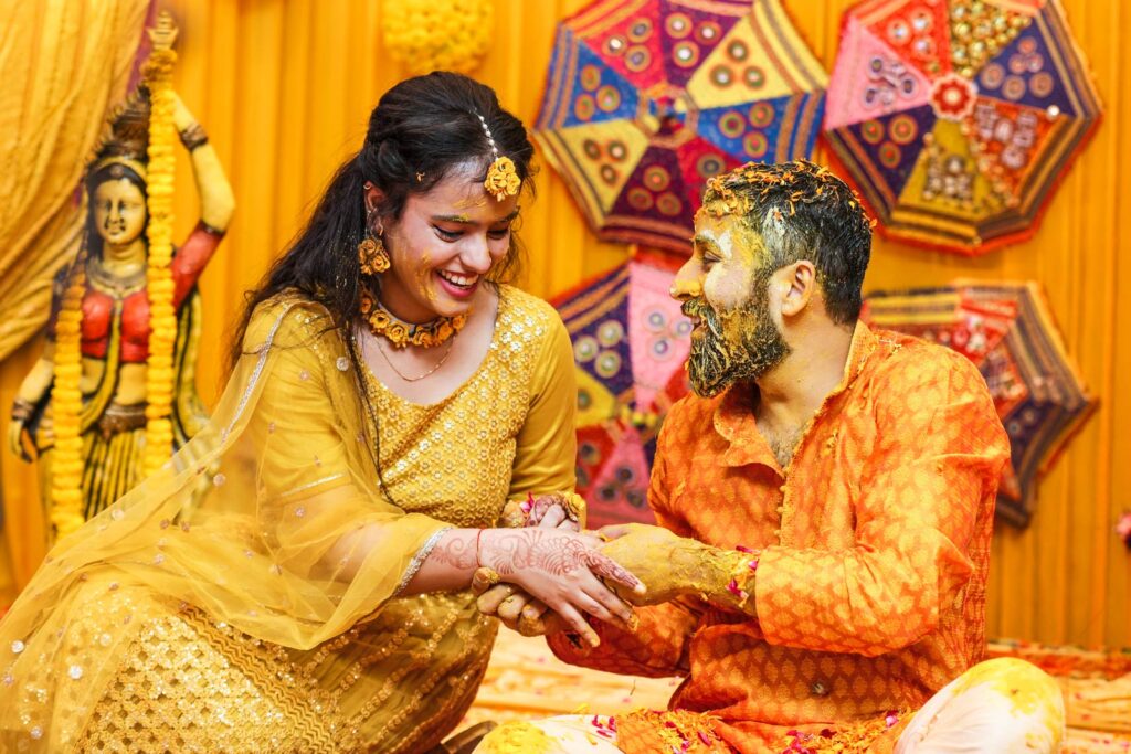 Mehendi ceremonies are filled with laughter, music, and playful conversations between the bride and her closest friends. These relaxed gatherings often produce some of the most natural candid photographs, from the bride admiring her freshly applied mehendi to friends teasing her about the upcoming wedding. A candid wedding photographer in Faridabad focuses on capturing these genuine interactions rather than staged poses.