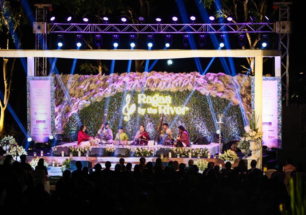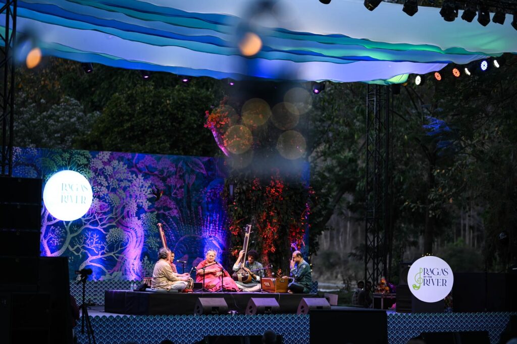 Ragas by the River festival performances during the 2024 and 2025 seasons along the Ramganga River in Corbett.