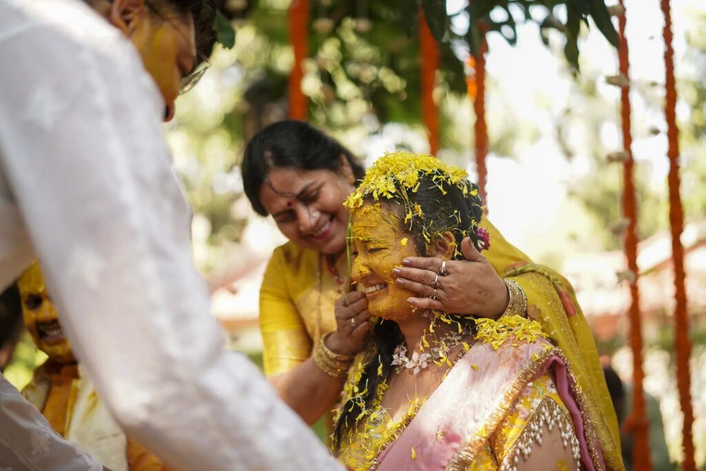 The haldi ceremony was full of energy and spontaneity, with moments that were both playful and emotional