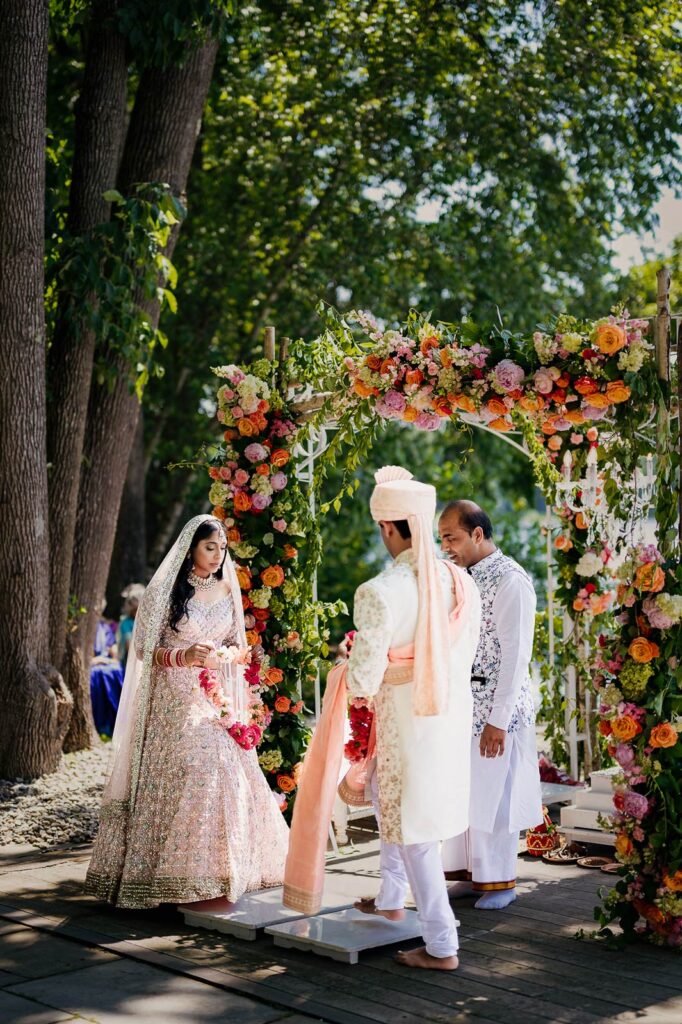 Most couples book 6–12 months in advance, especially for peak wedding season dates. Early booking ensures availability and proper planning time.